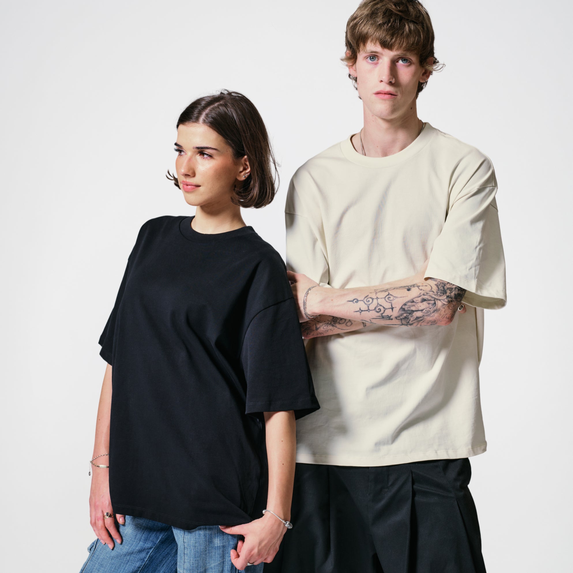 The Classic Tee is your everyday staple — 200 GSM combed cotton, clean silhouette, fits the way a great plain t-shirt should. The Oversized Tee is heavier at 275 GSM with a boxy cut, dropped shoulders, and 90s-inspired proportions that lean more streetwear. Both are premium blank tees, it just depends on the vibe you're after.